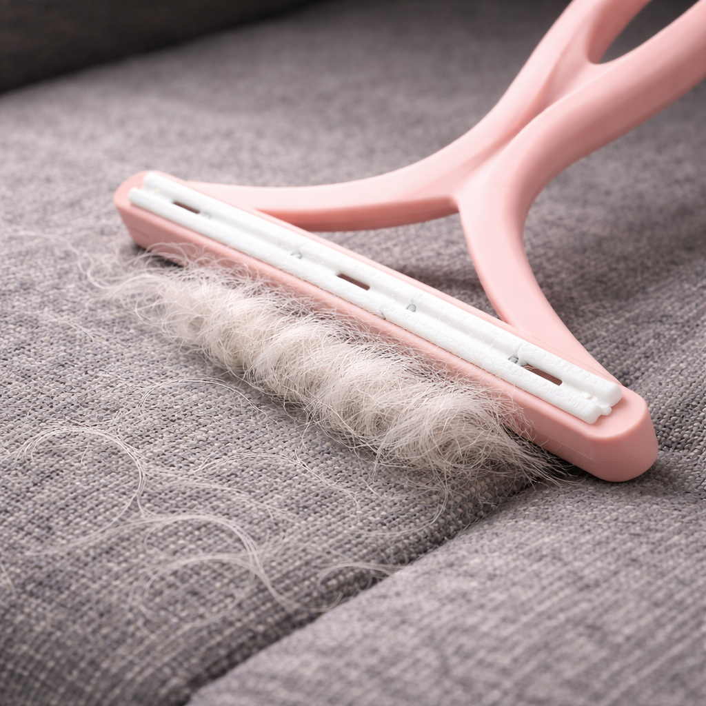 Lifts embedded pet hair that lint rollers leave behind — even from woven couch fabric.